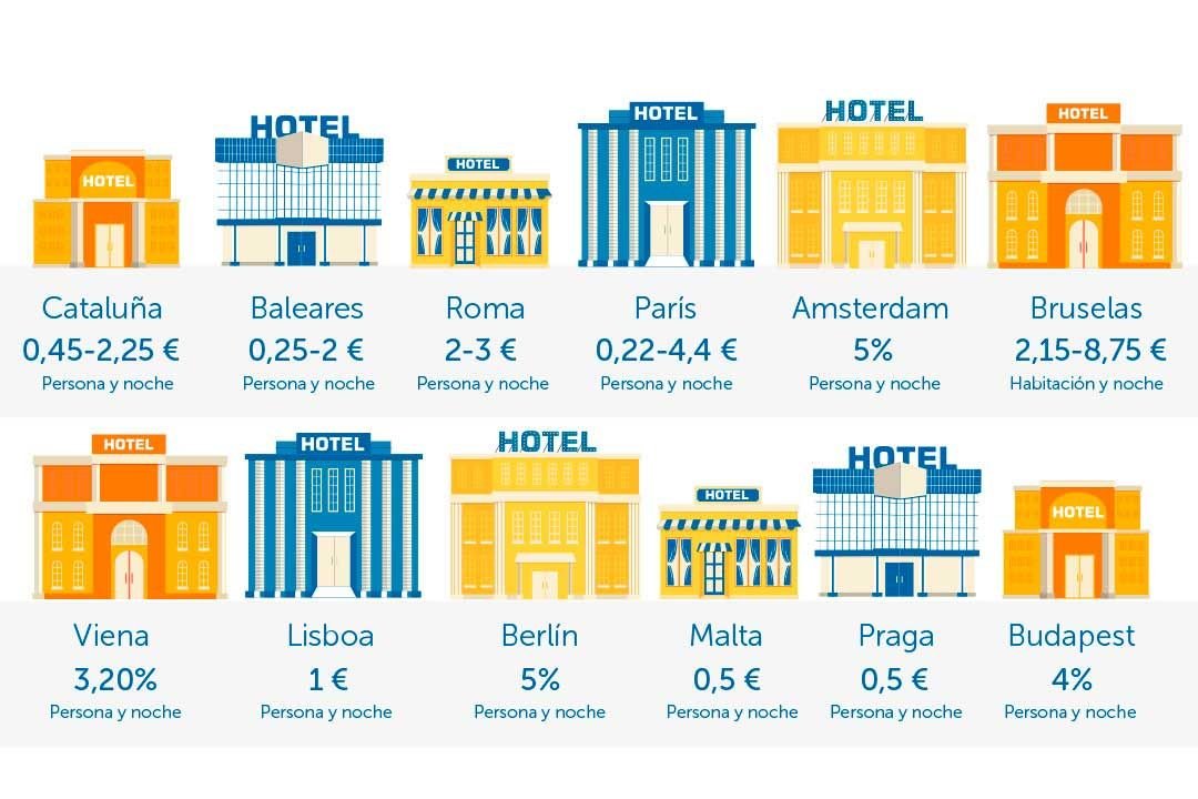 España (Cataluña) | Por noche y persona | 0,66 € – 3,50 € | Hoteles, apartamentos, cruceros |